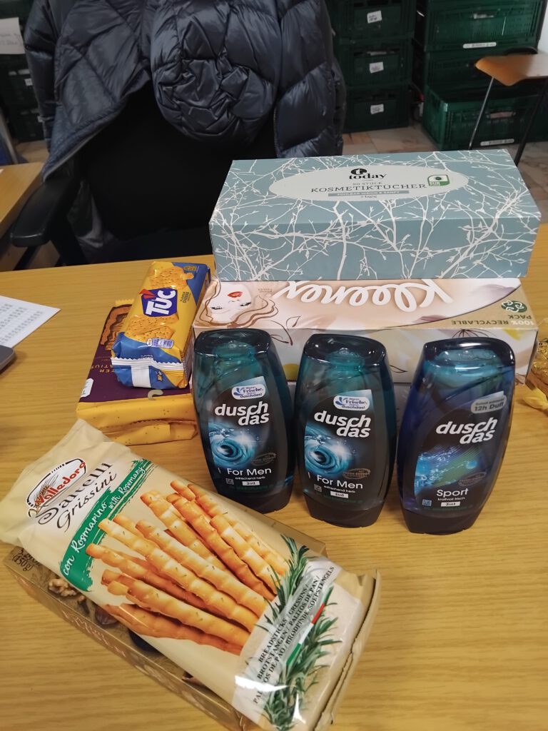 Sowohl bei unserer Losbude als auch bei den Weihnachtspäckchen, die wir in der Vorweihnachtszeit verteilt haben, ist, wie auf dem Foto zu sehen, etwas übrig geblieben. Da wir möglichst vielen Menschen, die aus verschiedenen Gründen nicht unbedingt viel Freude am Leben haben, wenigstens eine kleine Aufmerksamkeit zukommen lassen möchten, haben wir die Dinge gespendet.