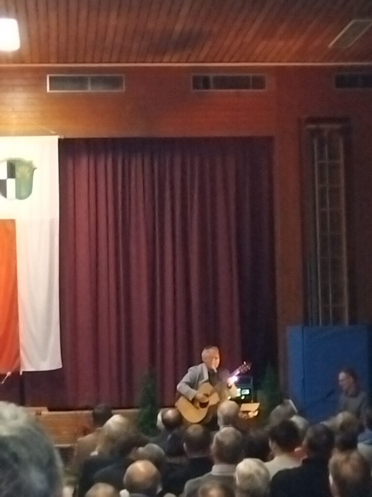 Der musikalische Rahmen des Abends wurde von Klaus Ulsenheimer und David Polinski gestaltet. Zur Eröffnung erinnerten sie daran, dass jeder mit seinen Talenten ein leuchtender Teil der Gesellschaft ist, der er angehört. Später kam die musikalische Erinnerung, dass wir alle hier für Frieden und Freiheit stehen, eine Aussage, die gern als Überschrift für den gesamten Abend gelten kann. Nähere Informationen dazu gibt es sicher zeitnah in den kommunalen Medien.